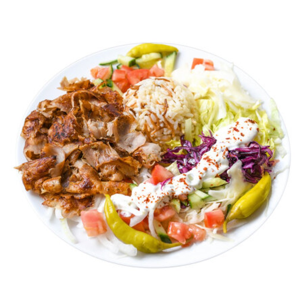 maso, turecký chléb, zelenina,